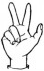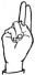 На ћирилици написано ЛАБУДА ВИЛИМОНОВИЋ састоји се из 17 слова [?]. Исписано ћириличном једноручном азбуком за глувонеме: